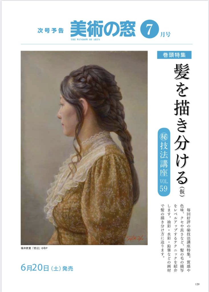 そして 美術の窓6月号 には来月6/20発売の7月号の告知に僕の作品が使われております。