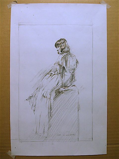 ①まず自分の構想のイメージに合ったポーズをモデルさんに20パターンくらいポーズしてもらい、その中で気に入ったものを2~3枚クロッキーします。(ケント紙にシャーペン3Bで)⇩